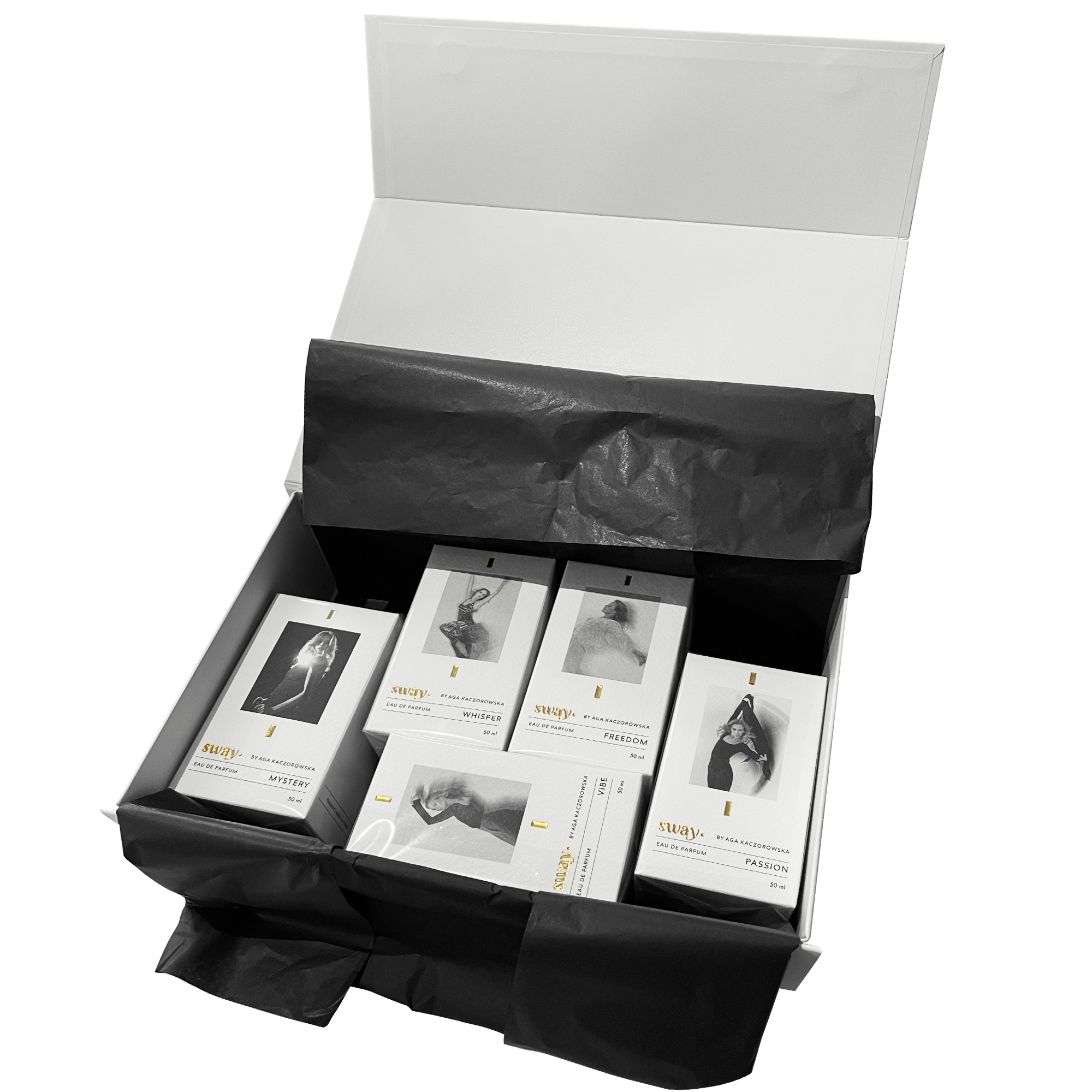 W zestawie znajdziesz wszystkie zapachy z kolekcji SWAY by Aga Kaczorowska:
